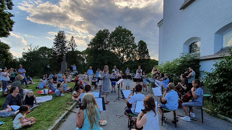 Bestum strykeorkester utenfor Ullern kirke, dirigert av Kristin Sæther Chandras ved Oslo kulturskole. Foto: Clare Smyth