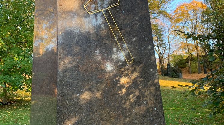 a) Hammeren på Henrik Ibsens gravmonument i Oslo;