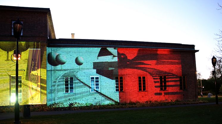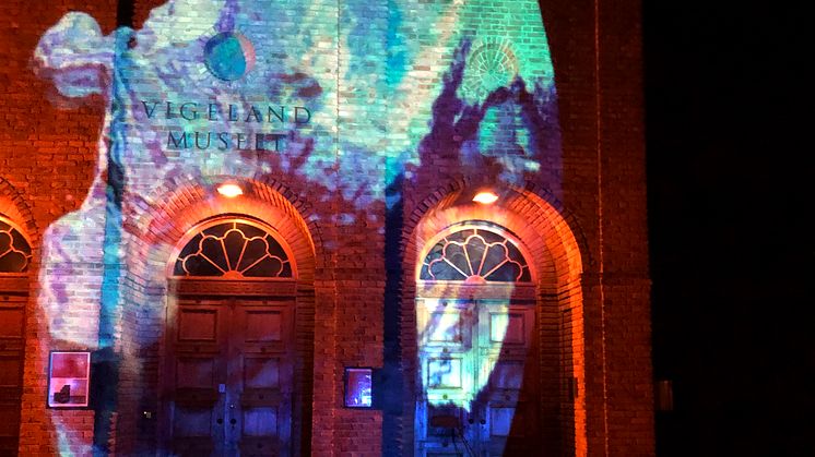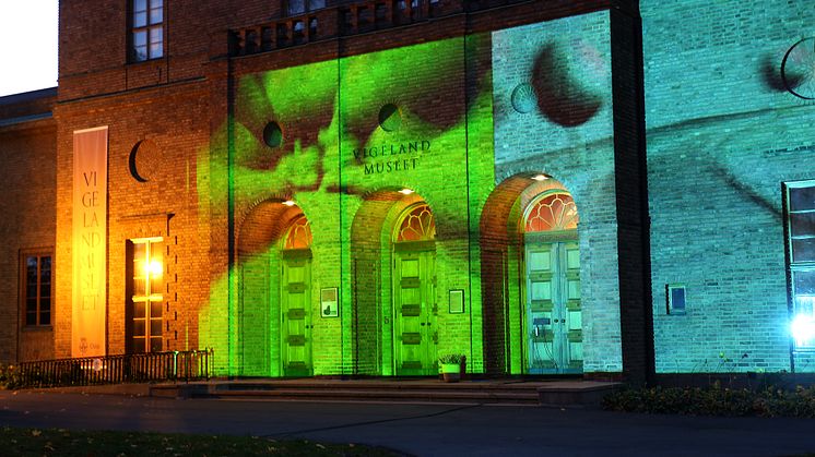 Kunstfilm på Vigelandmuseets fasade i høstmørket