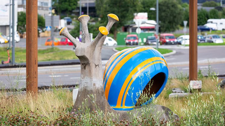 - Vi hadde håpet i det lengste at smittesituasjonen var slik at vi kunne arrangere en større avslutningsmarkering før sommeren, men slik situasjonen er ble det vanskelig. Derfor kastet vi oss rundt og satte opp noen prosjekter her. Vi synes det er viktig å vise omfanget av produksjonene som Oslobiennalen har vært involvert i før vi avrunder, slik at publikum kan få glede av å bli kjent med dem. Flere av verkene fortsetter å virke og vil være tilgjengelige etter biennalen er avrundet, som Alexander Rishaugs lydverk med opptak fra Høyblokka, skulpturpaviljongen OSV. Oslo Samlede Verk på Økern, Hlynur Hallssons tekstarbeider rundt omkring i byen, Rose Hammers radiohørespill The Radical Flu, og de ulike publikasjonene vi har laget, avslutter Slyngstadli.