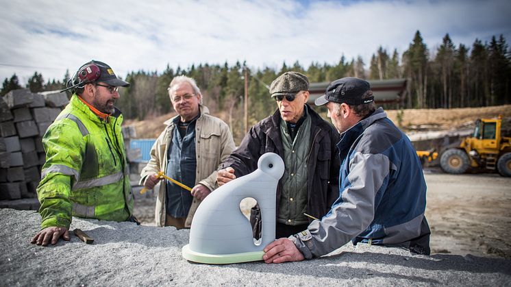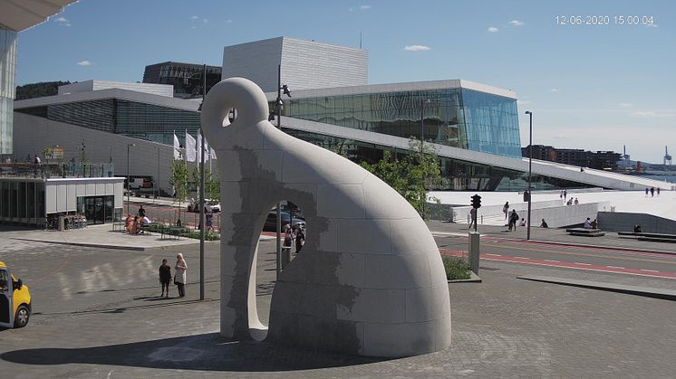 Foto: Skulpturstopp - bilde tatt 12. juni 2020. Snart ferdig, og klar for avdukning mandag 15. juni.