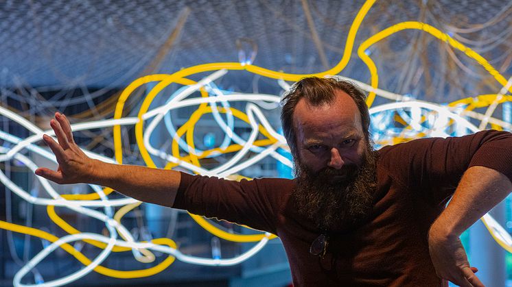 -Alt i kunstverket er håndlaget, og er krevende å jobbe med. Hvert rør er varmet opp til smeltepunktet og munnblåst til den formen jeg har skapt i modellen. – sier Lars Ø Ramberg
