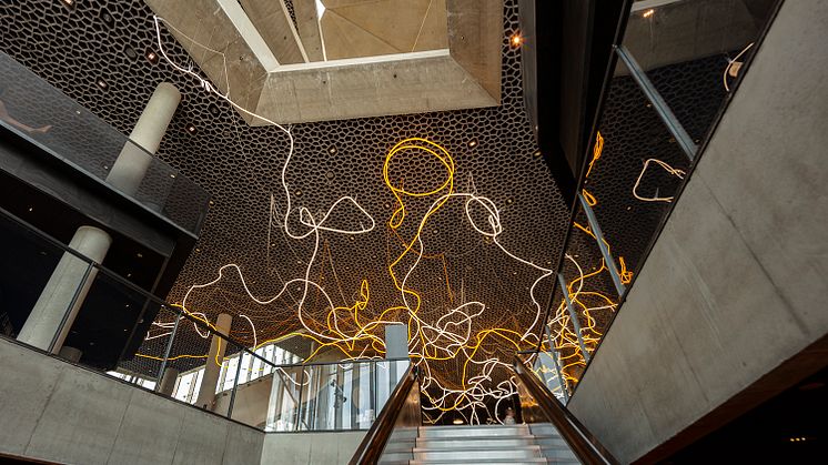 - Nå åpner vi Oslos store nye felles møteplass, og det blir et sted for alle fra hele byen. Da er det så bra at vi samtidig får på plass dette inspirerende kunstverket som kan lyse opp dagen for alle som bruker biblioteket. Vi bruker biblioteket for å bli opplyste mennesker på alle måter, og det er viktig at gode kunstopplevelser er lett tilgjengelig for innbyggerne. Jeg er glad for at vi får et så fint verk i den kunstsamlingen som vi oslofolk eier på deling, - sier Omar Samy Gamal, byråd for kultur, idrett og frivillighet.