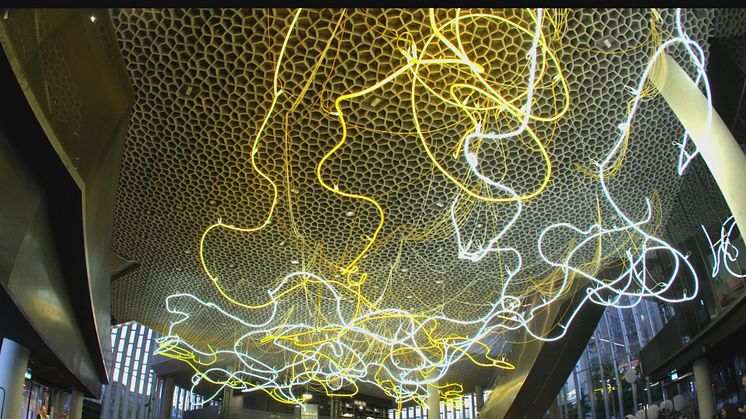 Endelig er det her. Kunstverket BRAINSTORM av Lars Ø Ramberg har tatt tre år å produsere. Resultatet er et gigantisk konseptuelt kunstverk med over 400 meter munn-blåste glassrør i hvitt og gult. Europas største neon kunstverk er det første man ser når en kommer inn i Oslos nye hovedbibliotek, Deichman Bjørvika