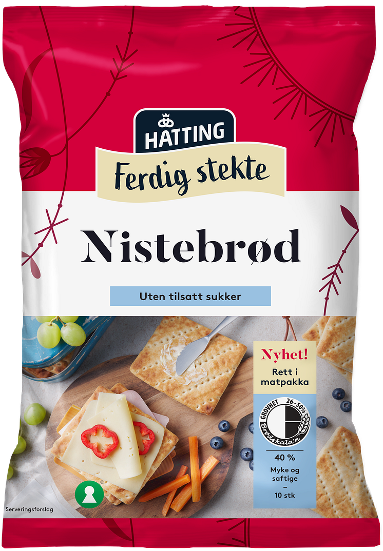 Hatting Nistebrød er ferdig stekte, flate brød uten tisatt sukker som tiner i matpakken