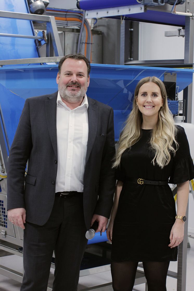 Fra åpning av ny hvetebakstlinje ved Lantmännen Unibake Norge på Langhus 11. januar 2019. Fra venstre: Thomas Bjarkholm (daglig leder), Anette Andersen (kategorisjef).