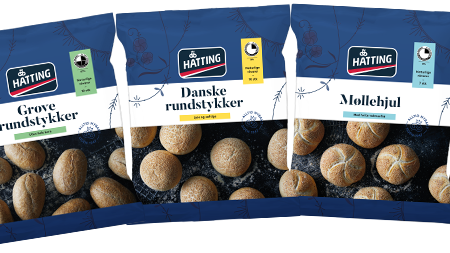 I februar 2019 kommer mange til å oppdage en ny og frisk blåfarge i frysedisken. Det er de blå posene til Hatting som har fått et nytt og friskt design. Det er Grove rundstykker uten hele korn, Møllehjul, Solsikkebriks, Danske rundstykker og nyvinningen Mini pizzabunn som i første omgang får kle seg i de nye blå posene.