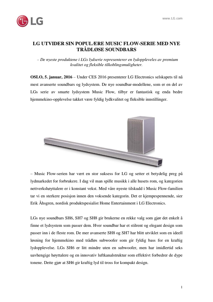 – De nyeste produktene i LGs lydserie representerer en lydoppleveles av premium kvalitet og fleksible tilkoblingsmuligheter.