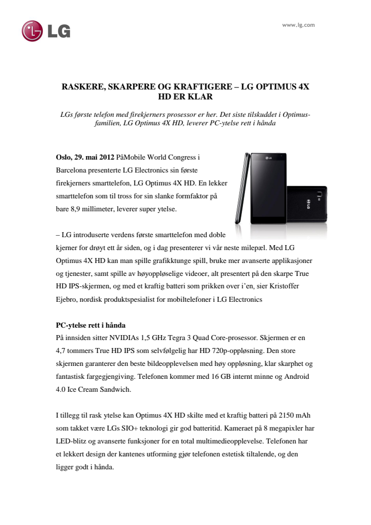 RASKERE, SKARPERE OG KRAFTIGERE – LG OPTIMUS 4X HD ER KLAR