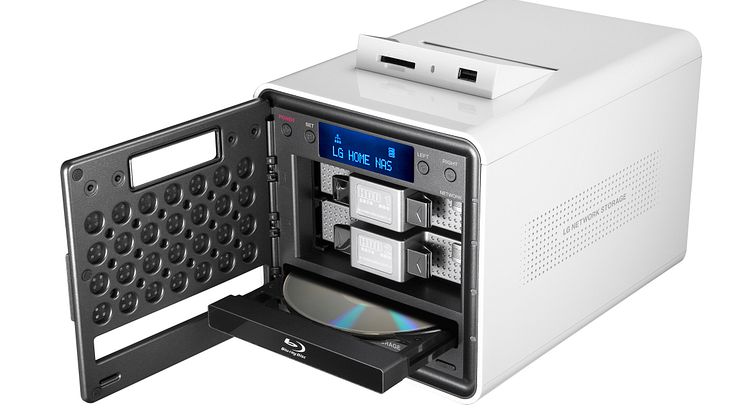 LG N2B1 er verdens første NAS-enhet med integrert optisk enhet som både leser og skriver Blu-ray-formatet. DLNA-sertifisering og støtte for iTunes gjør enheten til TV-stuens midtpunkt - musikk, filmer og bilder kan enkelt strømmes til PCen, fjernsynet, smart-telefoner og andre enheter med DLNA-støtte.