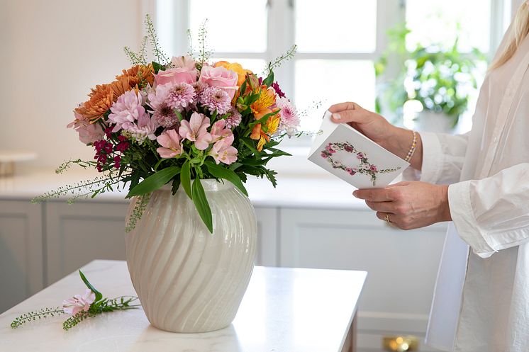 Mester Grønn sin Rosa sløyfe-bukett 2024