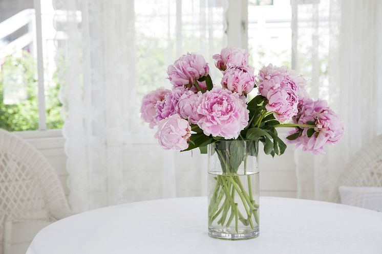 De første peonene kommer allerede i begynnelsen av april fra landene rundt Middelhavet, før sesongen normalt avsluttes i slutten av juni. Peon har blitt Europas mest populære sesongblomst, og er særlig ettertraktet til bryllup og arrangementer, men også som blomster i vase, hvor den folder seg ut med sine store vakre blomster i fargene hvitt, rosa og dyp burgunder.