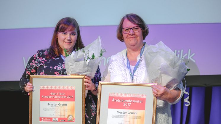 Med en score på hele 95,9 % vant Mester Grønn Kundeserviceprisen 2017. Flere selskaper enn noen gang tidligere har blitt målt på Kundeserviceprisen «Best i test» i 2017 og prisen ble delt ut på Call Center Dagene tirsdag 25. april på Radisson Blu Plaza Hotell i Oslo. Hele 132 selskaper ble målt i år, og blant disse var det store seriøse selskaper som Vinmonopolet, IKEA, 1881, NSB, banker og reiseselskaper. Basert på 25 samtaler hvor selgerne ble testet på en rekke punkter, ble det kåret vinnere i 16 bransjer, og Mester Grønn vant både kategorien Åpen klasse og totalt, og ble dermed Årets Kundesenter – Kundeserviceprisen «Best i test» 2017.