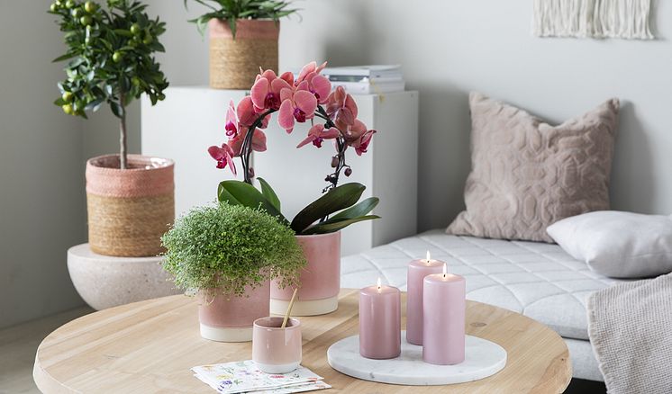 Vi fyller huset med blomster og planter som skaper liv til interiøret. Etter en lang og mørk vinter vender vi blikket ut mot terrassen. Vi ønsker å omgi oss med fargerike og delikate interiørnyheter. Vi ønsker å være koblet til naturen, og blomster og planter øker trivselen og skaper likevekt i en stressende hverdag.