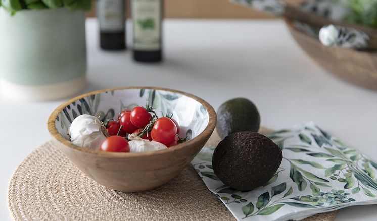 Vi fortsetter vinterens suksess med flotte Paros skåler, fat og serveringsbestikk. De nye fatene med delikat olivenmønster er flotte å dekke opp til både hverdag og fest. De er laget av FSC sertifisert mangotre, og er supre som fruktfat eller til deilige salater.