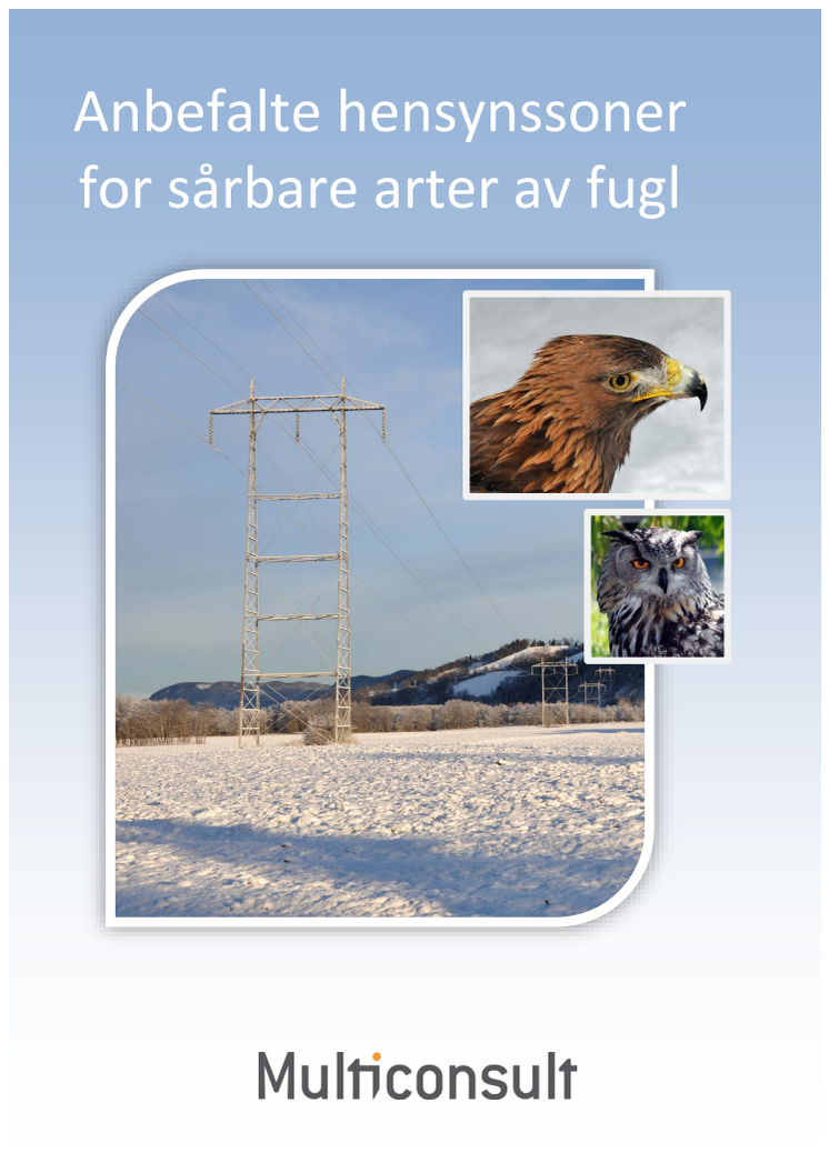 Notat, Anbefalte hensynsoner for sårbare arter av fugl, skrevet av Multiconsult på oppdrag fra Staknett.