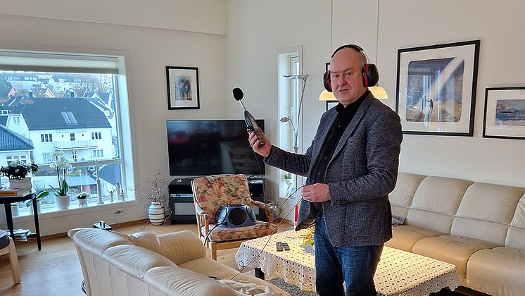 Bernt Mikal Larsen måler etterklangstid i stue/kjøkken