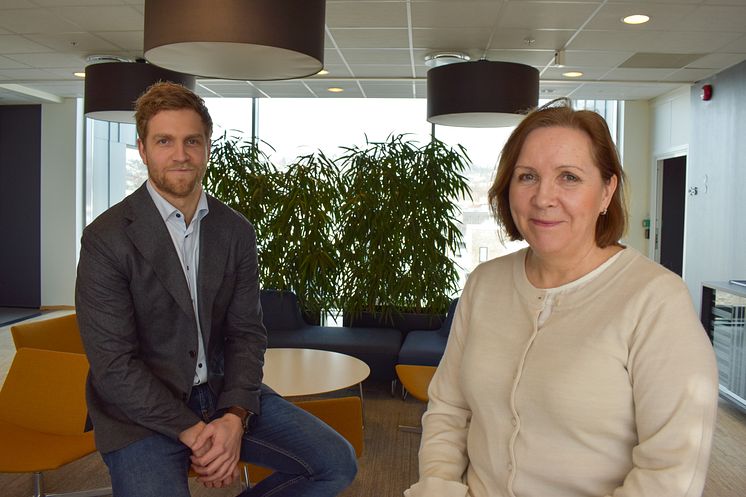 Herman Bjørn Smith, Chief Digital Officer, og konsernsjef Grethe Bergly i Multiconsult inngår samarbeid med Telia.