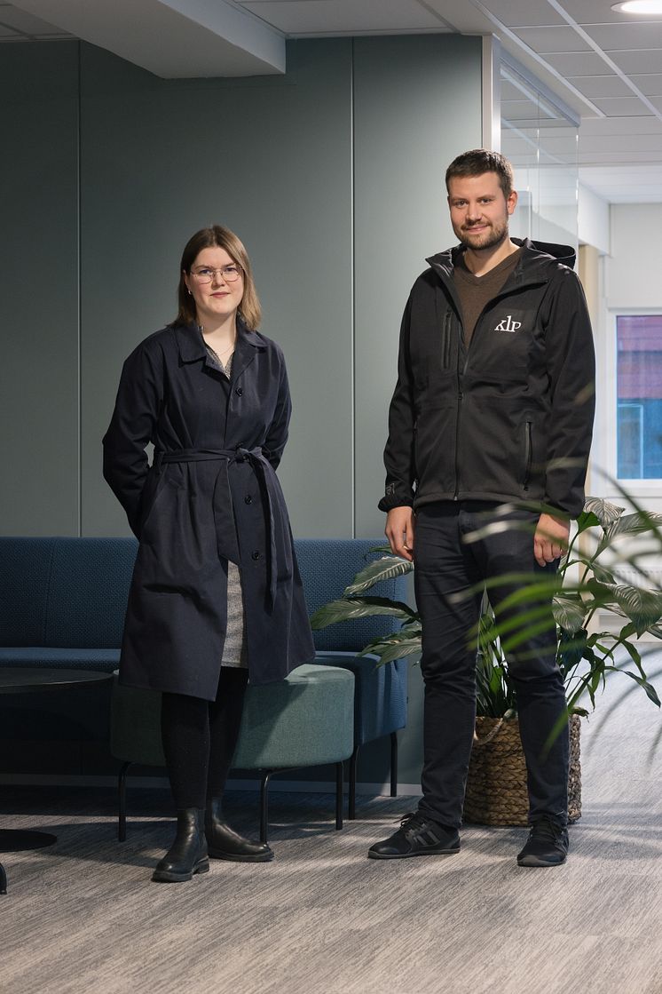 Sluppenveien 12E er oppgradert og kontormiljøer pusset opp forteller Solveig Heggvoll (Multiconsult) og Jonas Brenntrø (KLP Eiendom Trondheim).