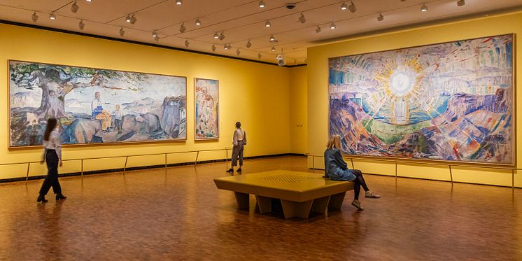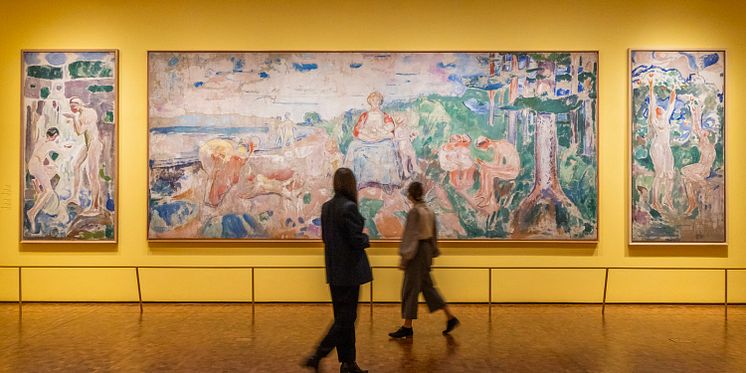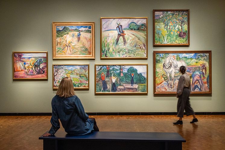 - Publikum får muligheten til å oppleve et fargerikt univers av naturens tilstedeværelse i Munchs kunstnerskap, deriblant også de berømte Aula-verkene som vises i et helt eget rom, kun dedikert til disse verkene.