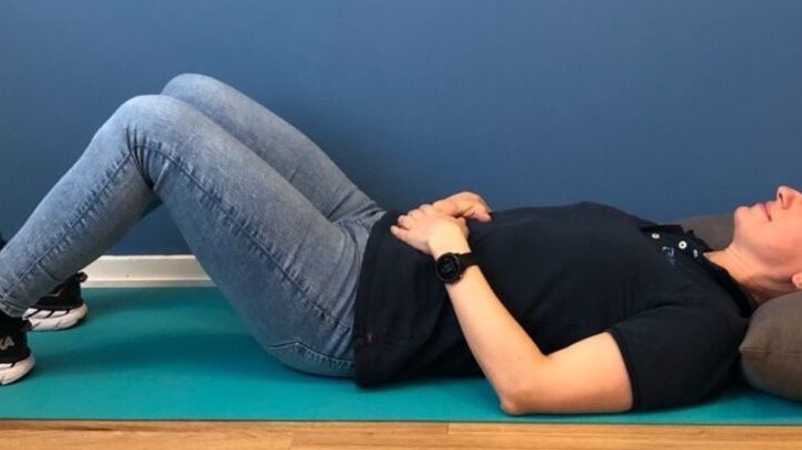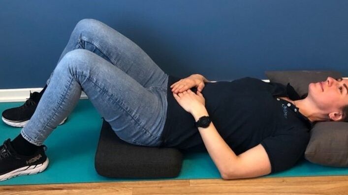 Legg deg ned på ryggen, gjerne med en pute under både knærne og hodet.