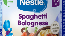 - Nestlé Spaghetti Bolognese 1-3 år, 220 gram, EAN-kode: 8445291061699, gjelder produkter med utløpsdato til og med 03.2027.