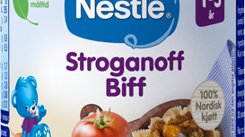 - Nestlé Stroganoff Biff 1-3 år, 220 gram, EAN-kode: 8445291072732, gjelder produkter med utløpsdato til og med 02.2027.