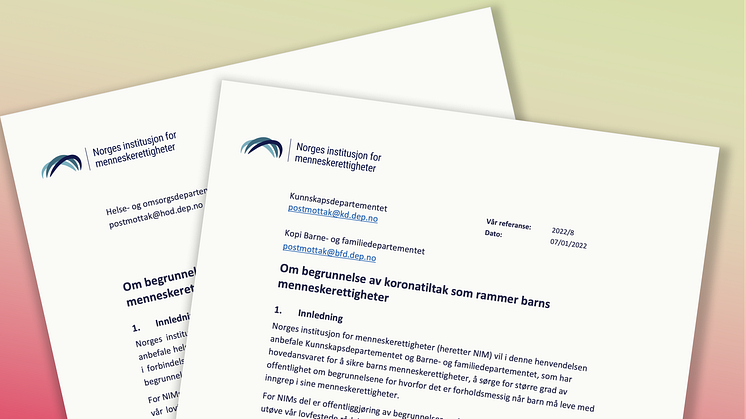 NIM har i dag sendt brev til Helse- og omsorgsdepartementet, Kunnskapsdepartementet og Barne- og familiedepartementet om vårt syn på behov for offentliggjøring av begrunnelser når regjeringen fatter beslutninger om koronatiltak som griper inn i menneskerettighetene.