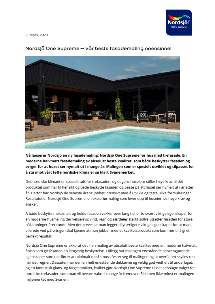 Nordsjö One Supreme – vår beste fasademaling noensinne! - pressemelding.pdf