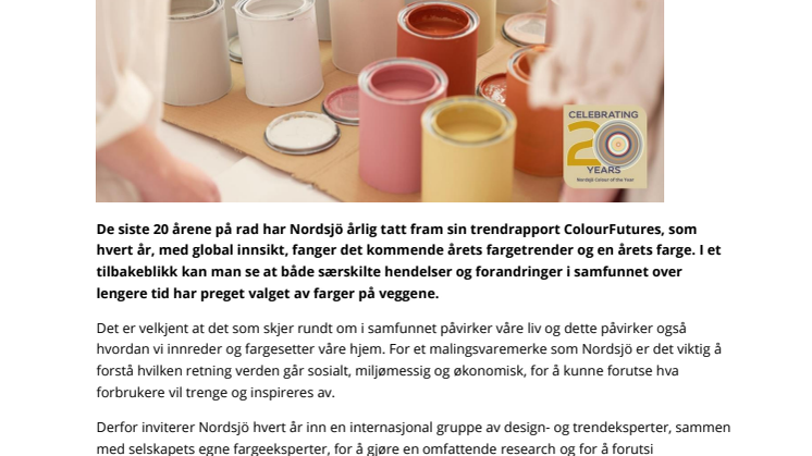 I år feirer Nordsjö 20 år med ColourFutures og Årets Farge