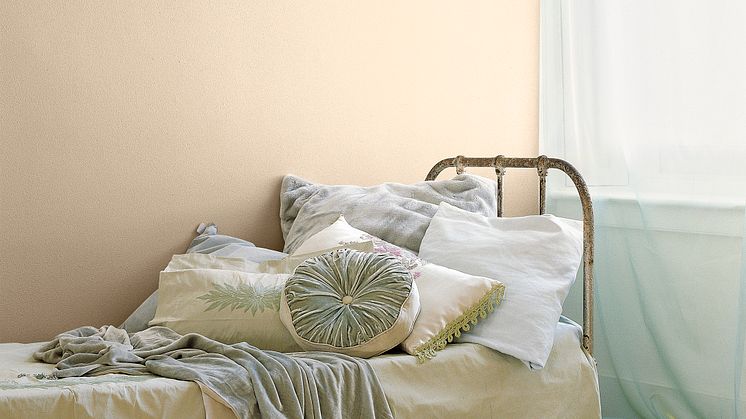 WARM – Denne fargegruppen må du vende deg til hvis du vil skape et riktig hyggelig og varmt hjem. Her finner du farger som går fra varm rosa og hyggelig beige over i beroligende lysebrun. Misty Miramas utstråler varme fra veggene og gir et riktig hyggelig soverom.