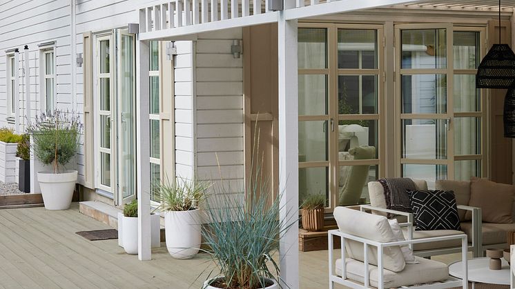 – Se treverket som en del av en helhet, og ønsker du å fremheve det, velg en farge som avviker fra fargeskalaen på husfasaden. Det kan være greit å huske på at sollyset varmer opp treverket mer med mørke farger, råder Nordsjös fargesjef Ann-Charlotte Linde.