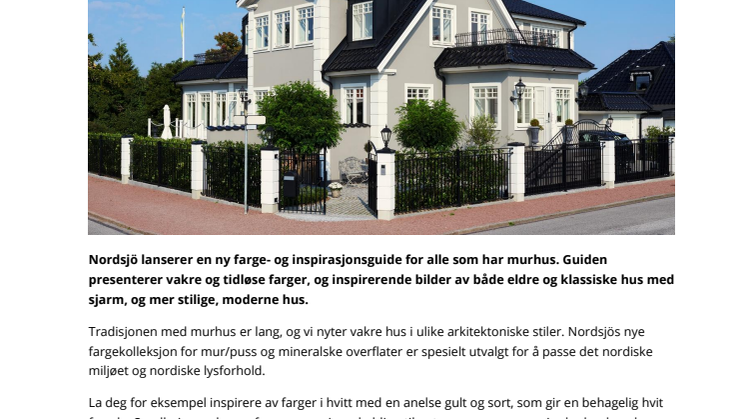 Nordsjö lanserer en ny farge- og inspirasjonsguide for alle som har murhus. Guiden presenterer vakre og tidløse farger, og inspirerende bilder av både eldre og klassiske hus med sjarm, og mer stilige, moderne hus.