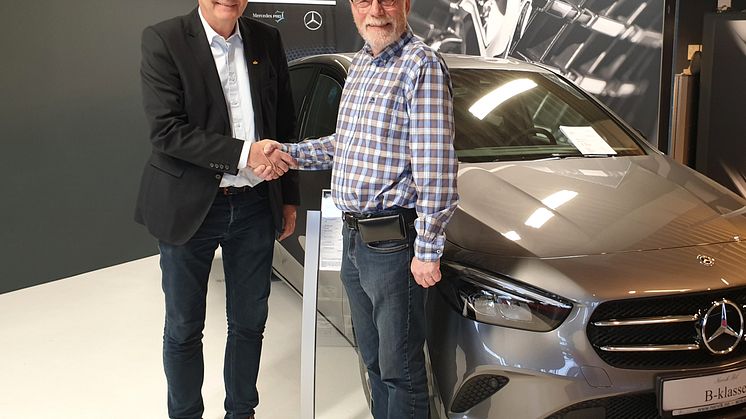 Konsernleder Thor Allan Nordvik fra Nordvik Gruppen og Eier Steffen Nervik fra Kåre Nervik Bilforretning AS og Hemnes Bil AS. Foto: Nordvik Gruppen.