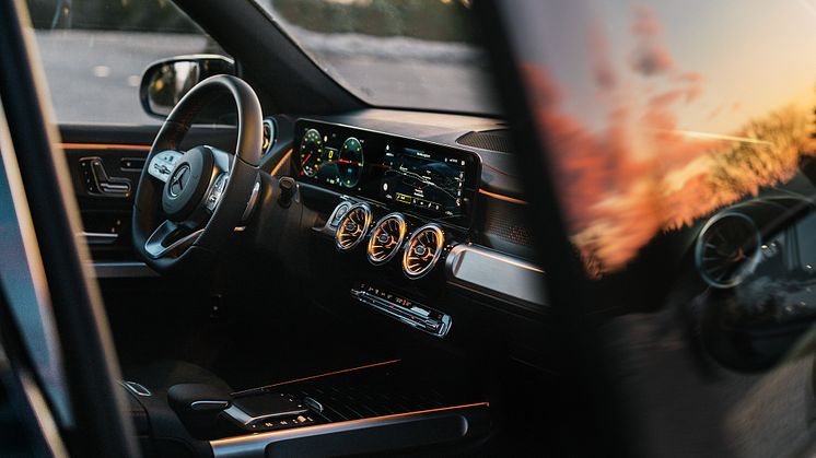 Langs dashbordet er den velkjente Widescreen Cockpit plassert, en skjermflate som gir krystallklare digitale instrumenter. Med MBUX (Mercedes-Benz User Experience) har du mulighet til å bruke stemmestyring via talekommandoen «Hey Mercedes». Her kan du for eksempel be om å skru opp varmen i bilen eller bytte lys på Ambient Lighting.