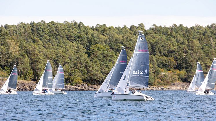 Etter første dag med seks seilaser fordelt på to grupper, leder svenske Patric Rosenberg og Fia Fjelddahl (VhSS). Beste norske lag er Henrik Julius Nilsen og Stian Soltveidt fra Fredrikstad, som ligger på 6. plass.