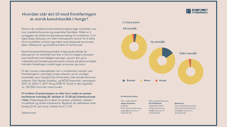 – Rapporteringsrutinene er ikke godt nok utviklet, og det er ikke lett for en politisk ledelse å vite hvordan situasjonen for fremføring av norsk kunstmusikk ser ut. Vi har laget undersøkelsen for å ha et godt grunnlag for videre diskusjon og samtale om dette emnet, sier han.