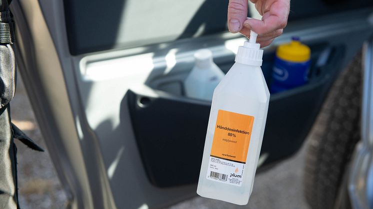 – Jeg må forklare kunden når jeg kommer at vi må holde god avstand, forteller Borgaard. Verktøy og utstyr han har med inn er desinfisert på forhånd, og alt han tar på, som dørhåndtak og fjernkontroll, blir desinfisert når han er ferdig. Engangshansker er på hele tiden.