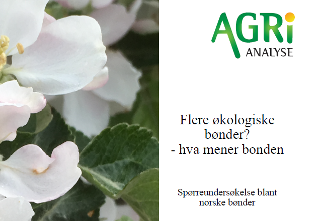 AgriAnalyse har på oppdrag fra Landbrukets Økoløft utført en elektronisk spørreundersøkelse blant norske bønder. Målet med spørreundersøkelsen utført av AgriAnalyse var å få en bedre forståelse av hvordan både konvensjonelle og økologiske bønder tenker omkring og vurderer sin produksjon, holdninger til økologisk produksjon og hva som skal til for at flere legger om til økologisk produksjon i Norge. Undersøkelsen ble sendt ut til i underkant av 4.000 bønder, med en svarprosent på 34 prosent.