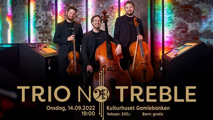 Medan Opera Nordfjord er i full sving med regiprøver og scenerigging til La Traviata, er det hyggeleg å kunne invitere til gjestespel i ventetida. Trio no Treble er ein utradisjonell trio med bratsj, cello og kontrabass, ein trio utan diskant, kun mørke røyster og djup klang. Trioen består av Lars Marius Hølås (bratsj), Eivind Rossbach Heier (cello) og Jostein Bolås Brødreskift (kontrabass).