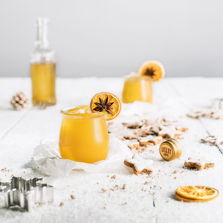 Ha alle ingredienser i ett glass fylt med isbiter. Dekorer med et dryss allehånde, stjerneanis og en tørket appelsinskive.