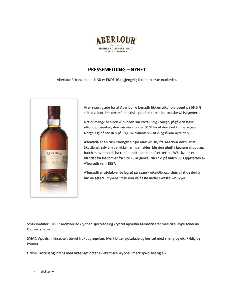 Aberlour A`bunadh er ENDELIG tilgjengelig for det norske markedet.