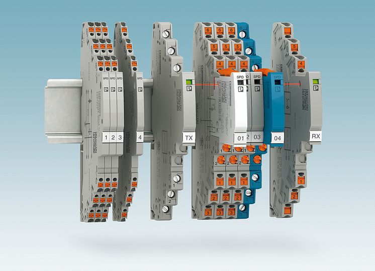 Med produktserien Termitrab complete presenterer Phoenix Contact nå det smaleste overspenningsbeskyttelsesutstyret på markedet. Det er egnet for bruk med måle-, styre- og reguleringsteknikk fra en byggbredde på bare 3,5 mm. Dermed kan beskyttelsesutstyret beskytte opptil 572 signaler mot overspenning på kun én meter monteringsskinne.