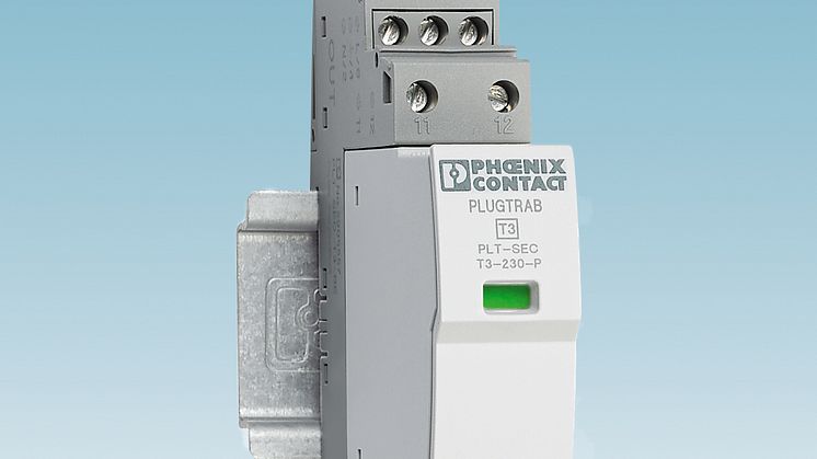 De nye overspenningsbeskyttelsesenhetene Plugtrab PLT-SEC type 3 fra Phoenix Contact utmerker seg med en nyutviklet skilleanordning som gir bedre sikkerhet ved elektrisk og termisk overlast, uavhengig av installert sikring. Safe Energy Control Technology gir beskyttelsesutstyret meget lang levetid. Det beskyttede sluttutstyret belastes mindre enn ved vanlige installeringer.