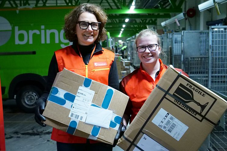 Konsernsjef Tone Wille var med Veronica Dahle for å kjøre ut pakker i Oslo sentrum en dag før jul.