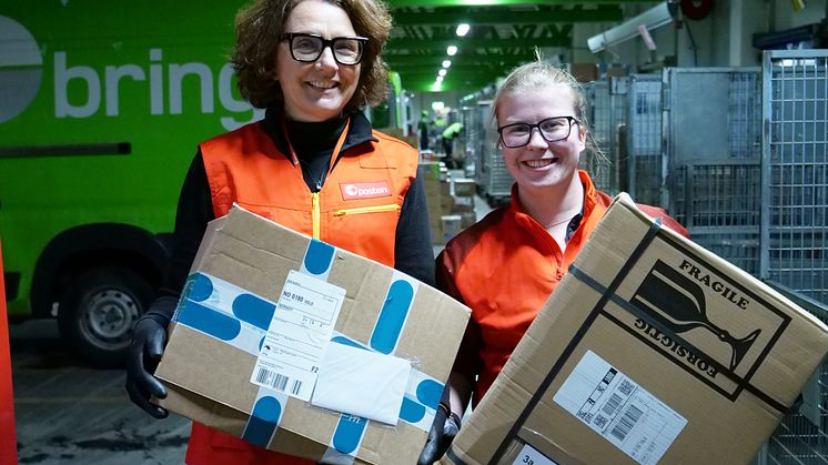 • Konsernsjef Tone Wille var med Veronica Dahle for å kjøre ut pakker i Oslo sentrum en dag før jul.