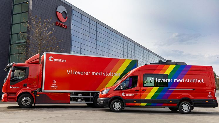Regnbuefargene har fått plass på to av Postens biler som nå ruller rundt i hovedstadsområdet. De skal markere at Posten står for mangfold, fellesskap og kjærlighet.