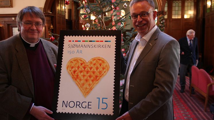 Sjømannsprest Torbjørn Holt i London, var meget fornøyd med at vafler pryderfrimerkene. Han leder en menighet som har røtter helt tilbake til 1692, da den norsk-danske kirken i byen ble etablert.