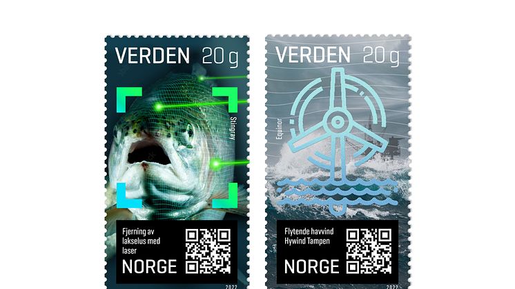 Banebrytende norske løsninger innenfor havvind og laserteknologi er motiver når Posten nå gir ut to nye frimerker med tema Innovasjon, forskning og teknologi.