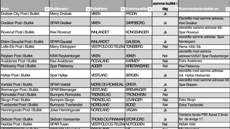 Per 1. mars 2021 har Posten utvidet servicenettet til 1 615 punkter med ulike konsepter: